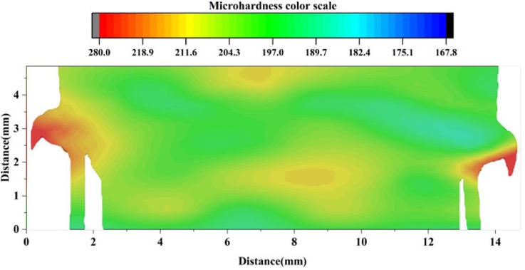 Indentation micro-hardness mapping profile across the weld nugget and surrounding