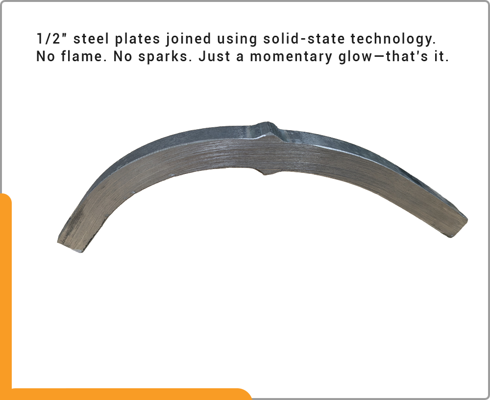 FuseRing successfully demonstrated the solid-state joining of two ½” × 5” steel plates at below melting.